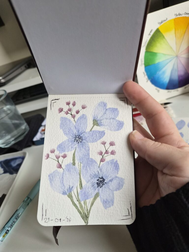 Along my coloring adventures, I’m now getting into watercolor! I’m currently waiting for my Sennelier La Petite Aquarelle 36 pan-palette and am for now playing with some colors from Daniel Smith, Winsor & Newton, Van Gogh, Rembrandt and Blockx.